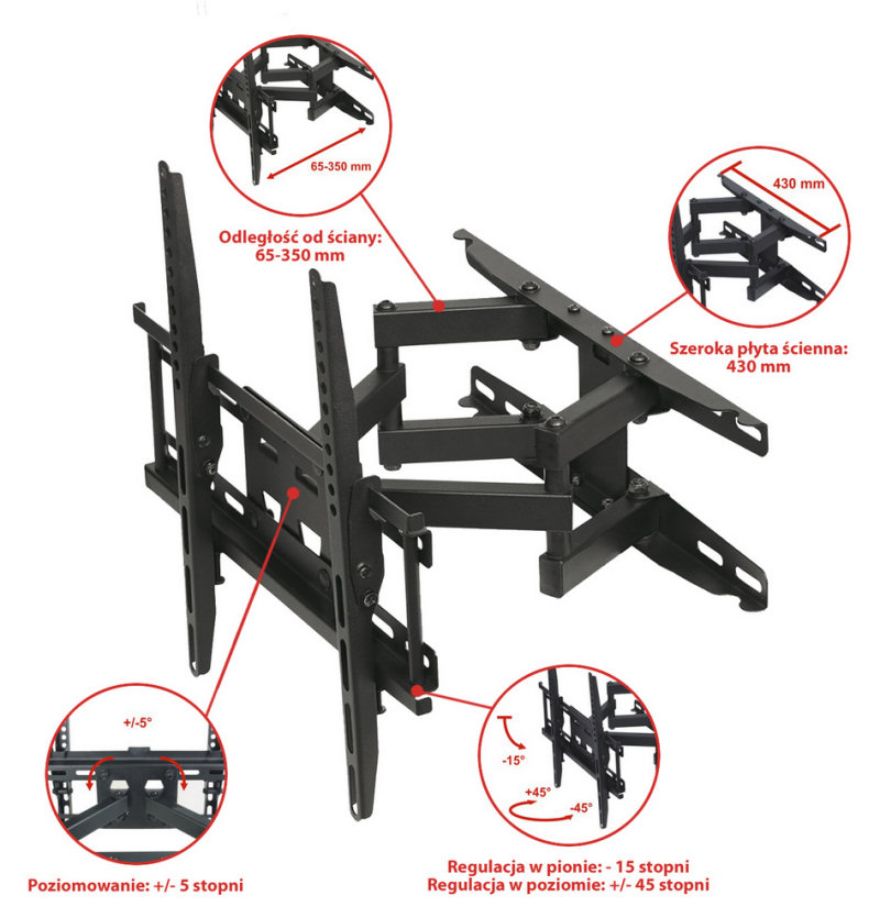 Uchwyt do telewizora z regulacją w pionie i poziomie