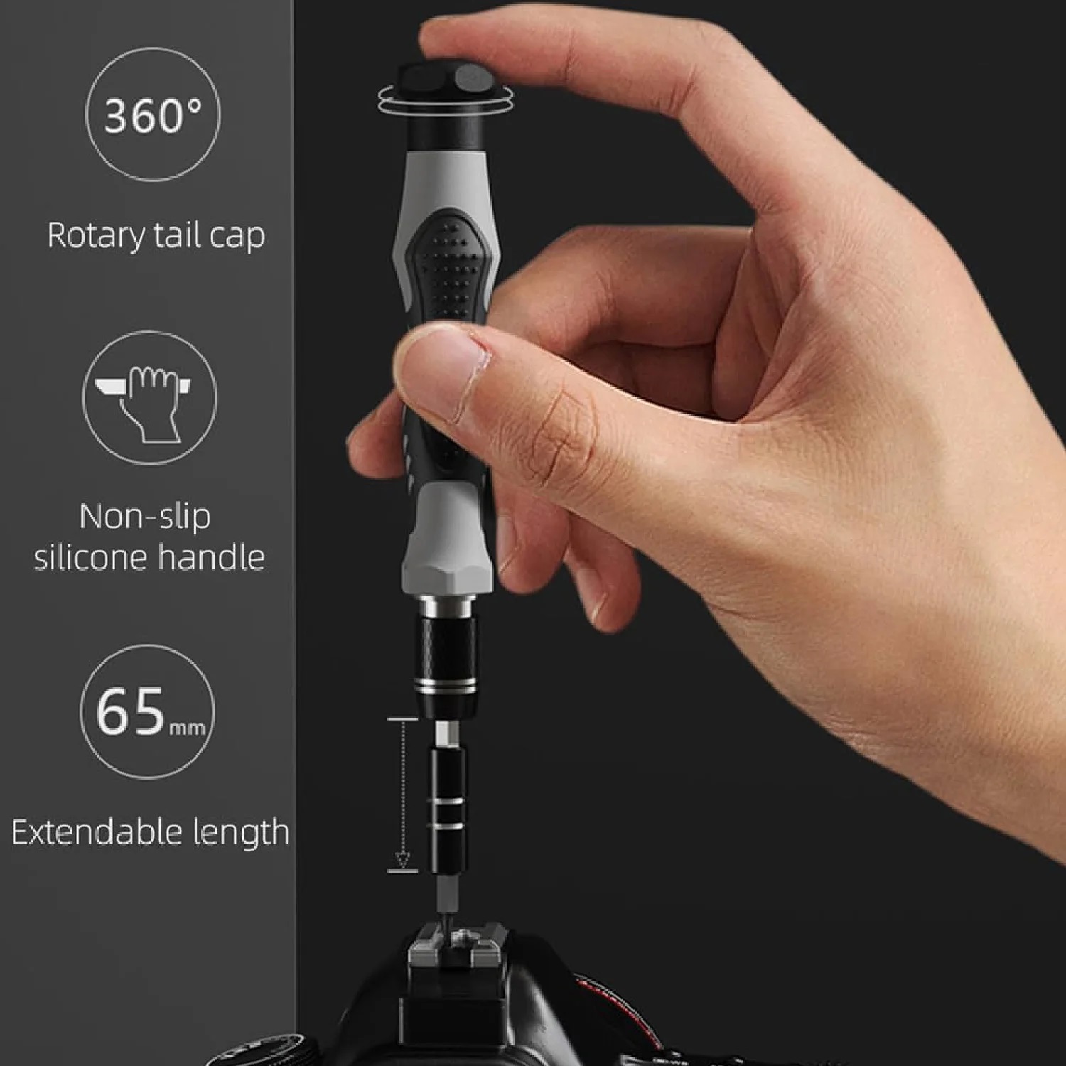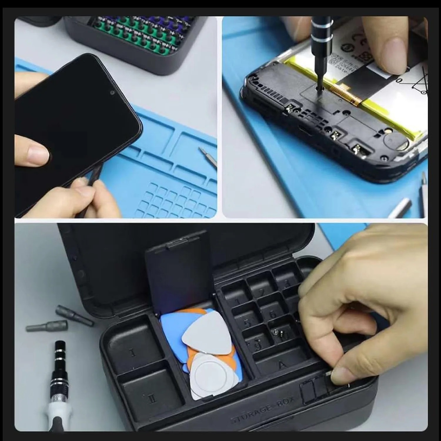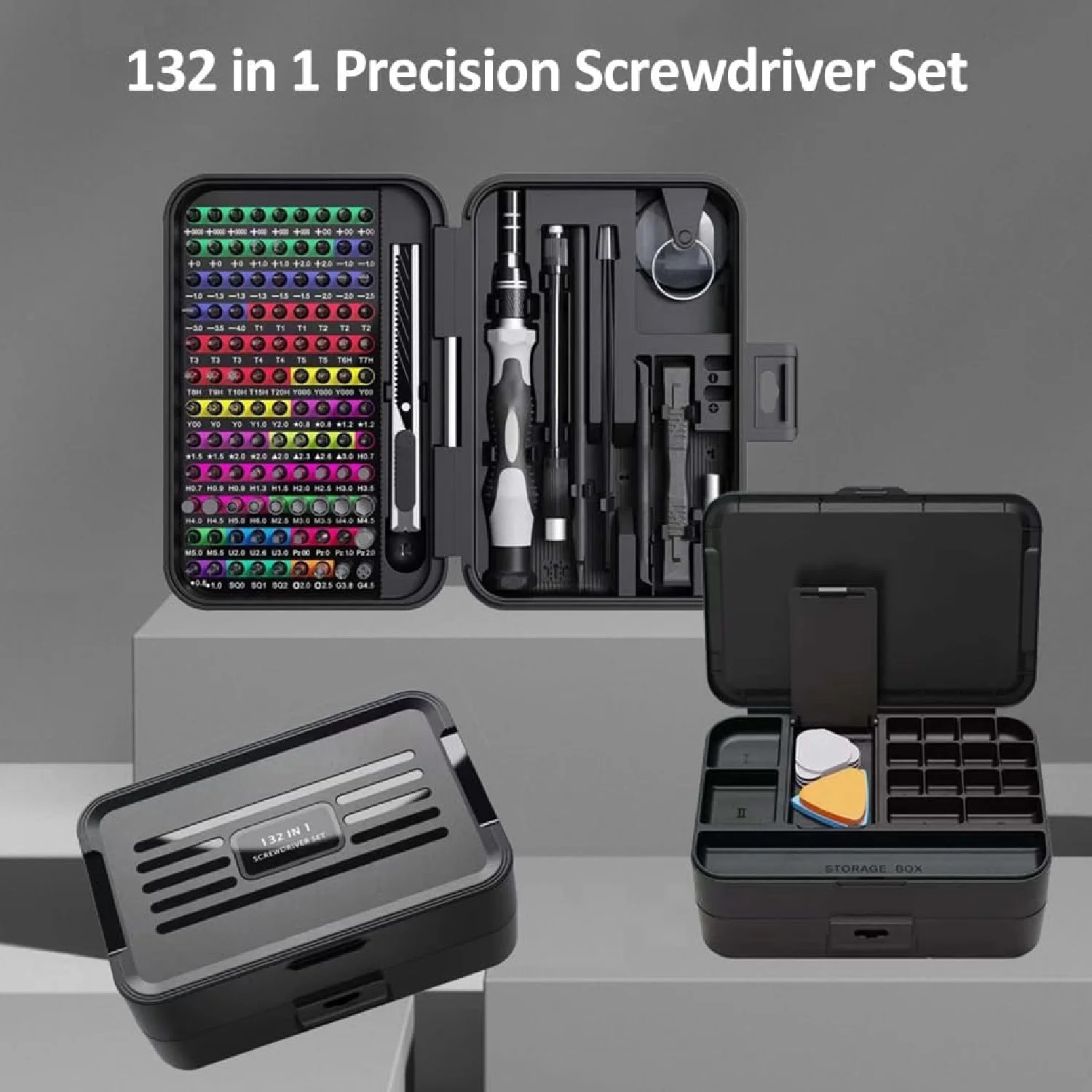 Zestaw 132w1 to kompleksowy komplet narzędzi stworzony z myślą o precyzyjnych naprawach urządzeń elektronicznych. Dzięki szerokiej gamie bitów i akcesoriów ten zestaw doskonale sprawdzi się przy pracy z telefonami, laptopami, konsolami, tabletami, aparatami fotograficznymi, zegarkami i innymi delikatnymi urządzeniami.