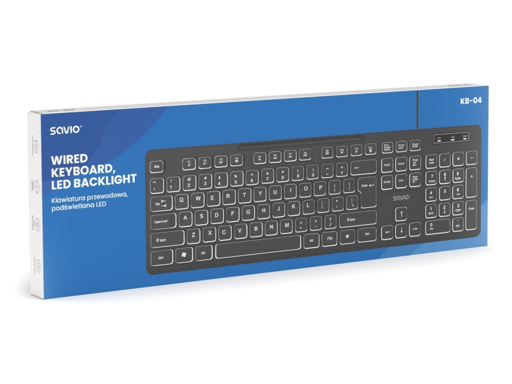 KB04 Klawiatura przewodowa USB-A podświetlenie LED Sasvio KB-04
