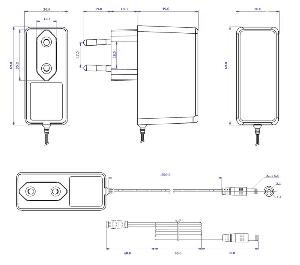 - Wtyk DC: 2.1/5.5 mm