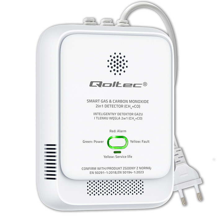 Półprzewodnikowy czujnik gazu (CH4) i czadu (CO) o wysokiej dokładności i trwałości, dzięki nowoczesnym sensorom szybko wykrywa obecność niebezpiecznych stężeń gazów palnych oraz tlenku węgla, uruchamiając głośny alarm dźwiękowy i świetlny.