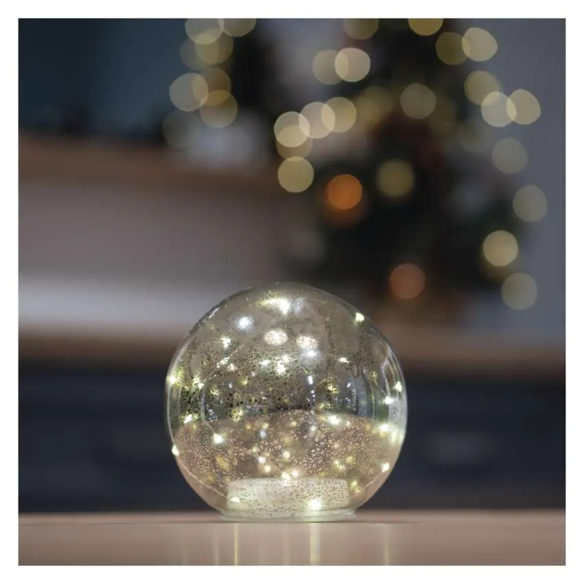 DCLW35 Dekoracje - kula szklana 20xLED, 15cm, 3xAA, złota, ciepła biel, timer