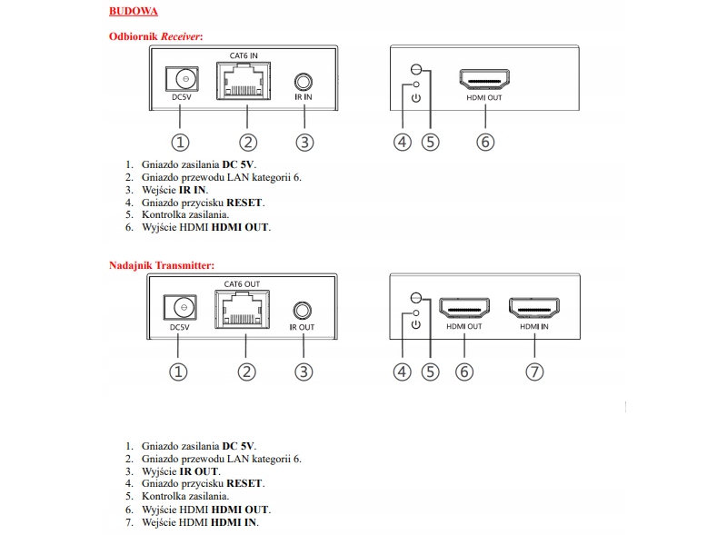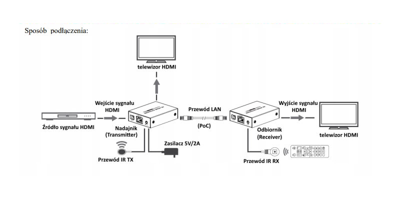 - Długość przewodów HDMI 5m dla nadajnika i 5m dla odbiornika