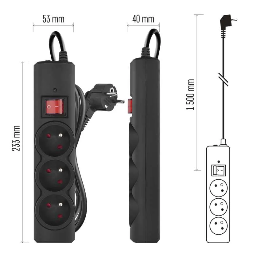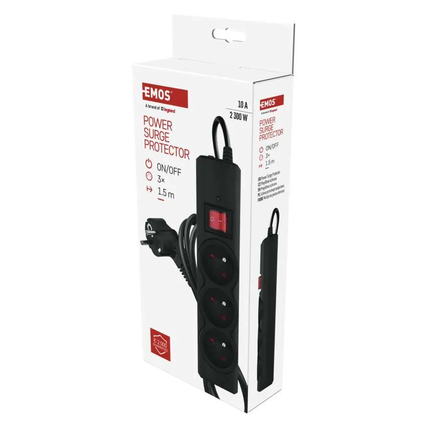 P54014 Przedłużacz listwowy przeciwprzepięciowy Emos F3 czarny 1.5m
