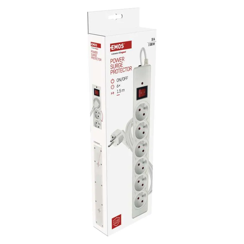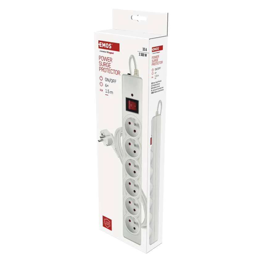 P54015 Przedłużacz listwowy przeciwprzepięciowy Emos F6 biały 1.5m