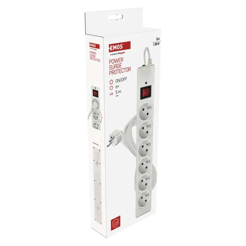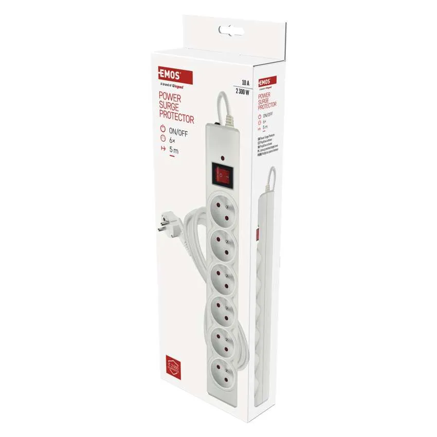 P54017 Przedłużacz listwowy przeciwprzepięciowy Emos F6 biały 5m