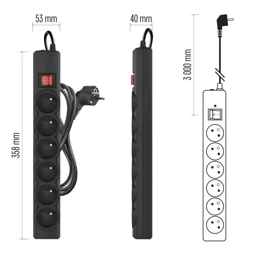 P54019 Przedłużacz listwowy przeciwprzepięciowy Emos F6 czarny 3m